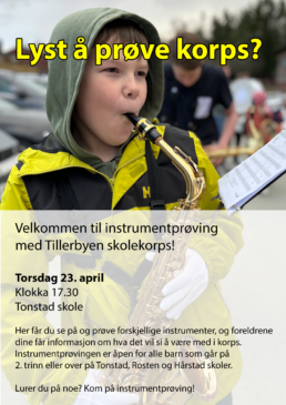Velkommen til instrumentprøving med Tillerbyen skolekorps torsdag 23. april kl 17.30 på Tonstad skole.